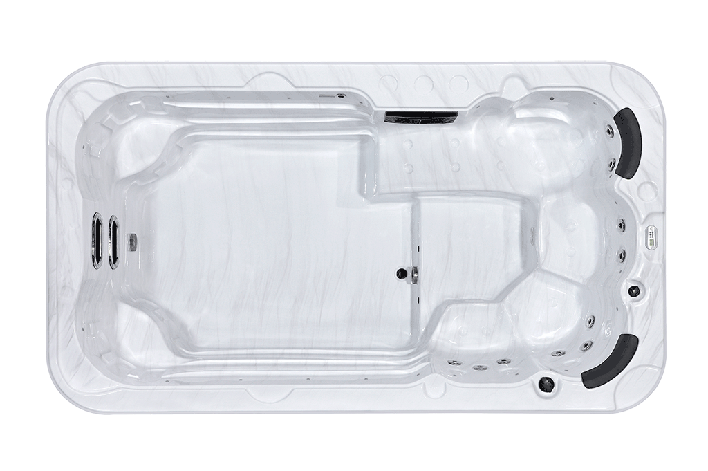 The Nimos swim spa is the ideal solution for those seeking a single-zone pool combining swimming and relaxation in a compact and optimized format. With its dimensions of 385 x 220 x 120 cm, it offers a smooth and seamless swimming area, perfect for swimming and relaxation enthusiasts.