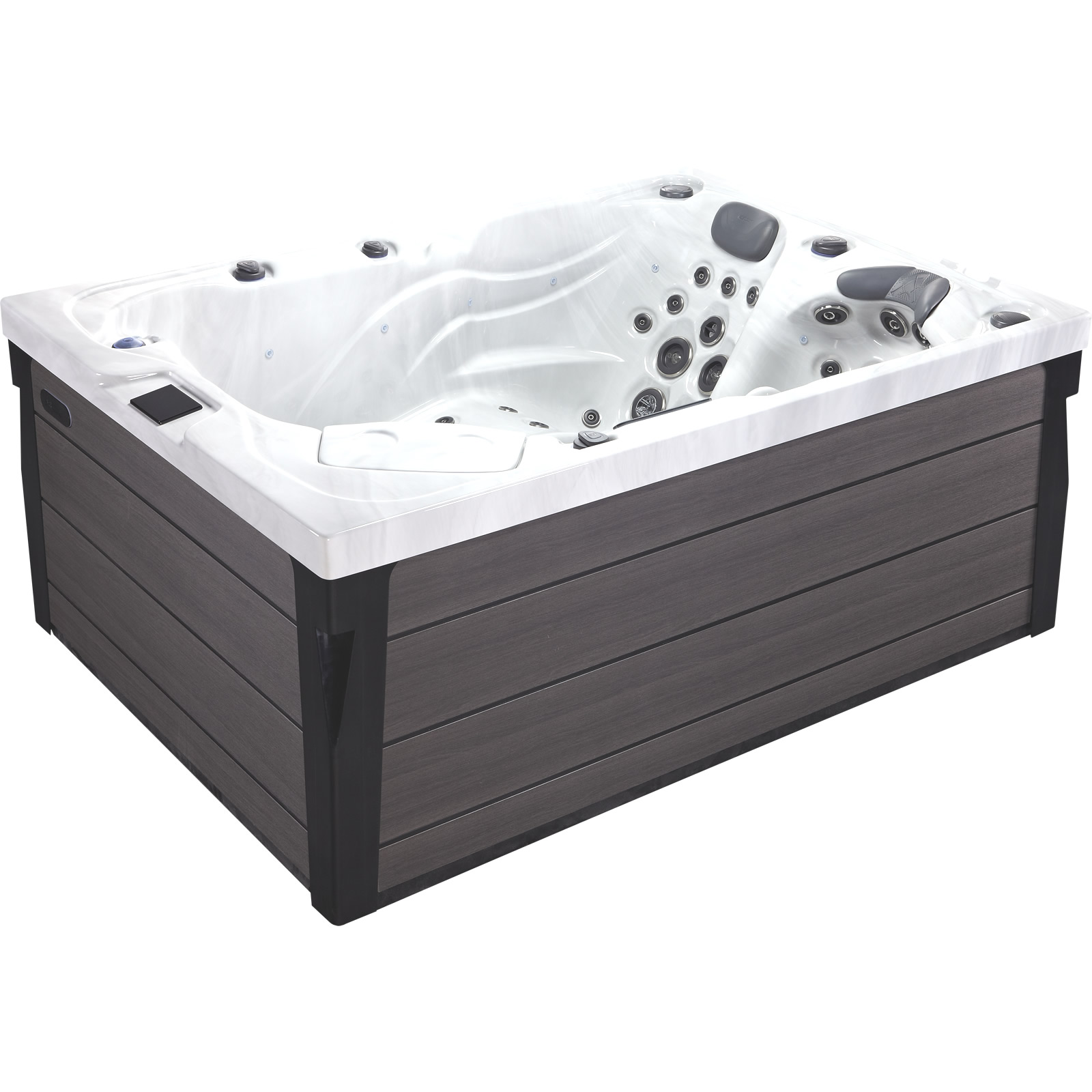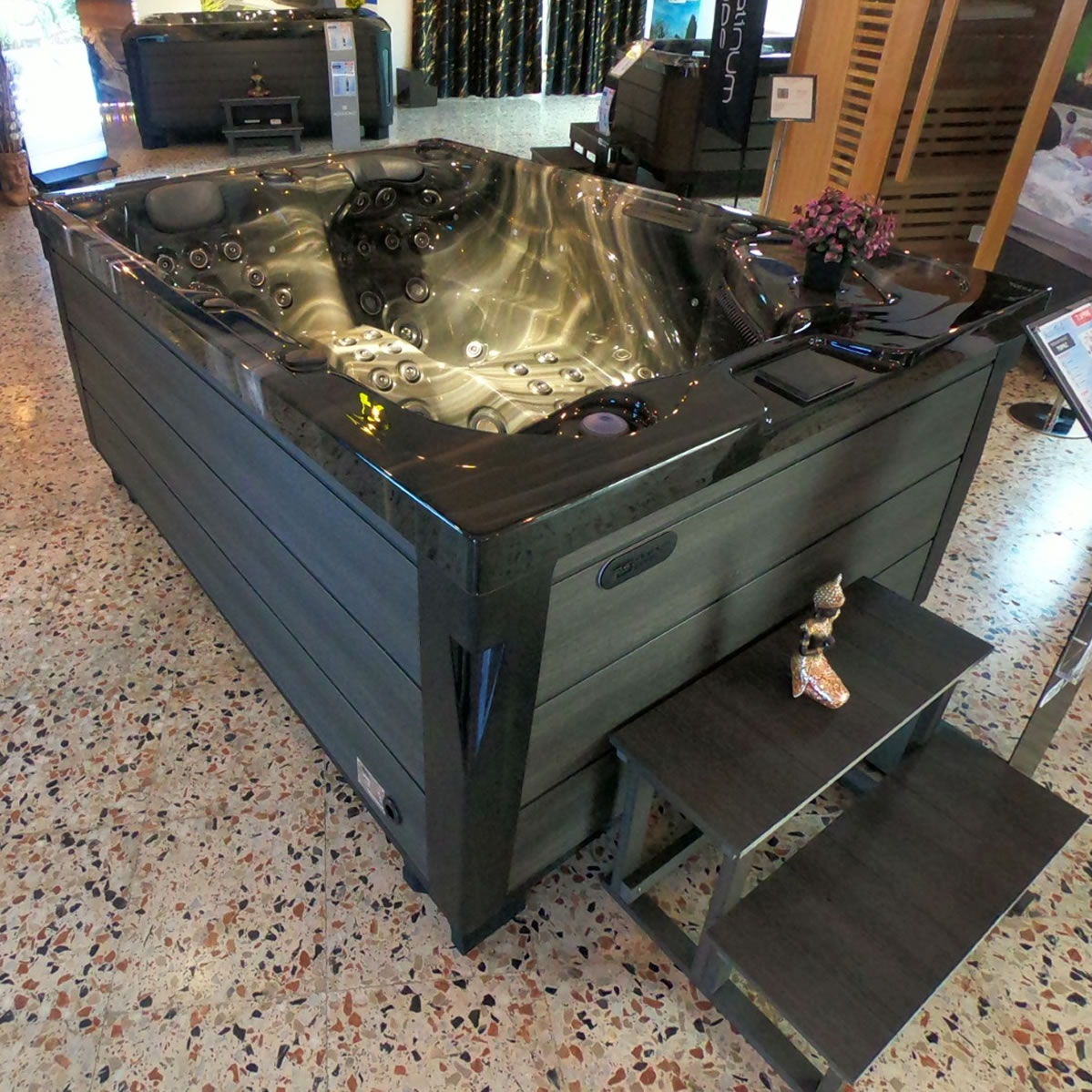 Topaz viene con 2 tumbonas y 1 asiento, perfecto para una familia, 73 chorros con una variedad de formaciones y variaciones de chorro.