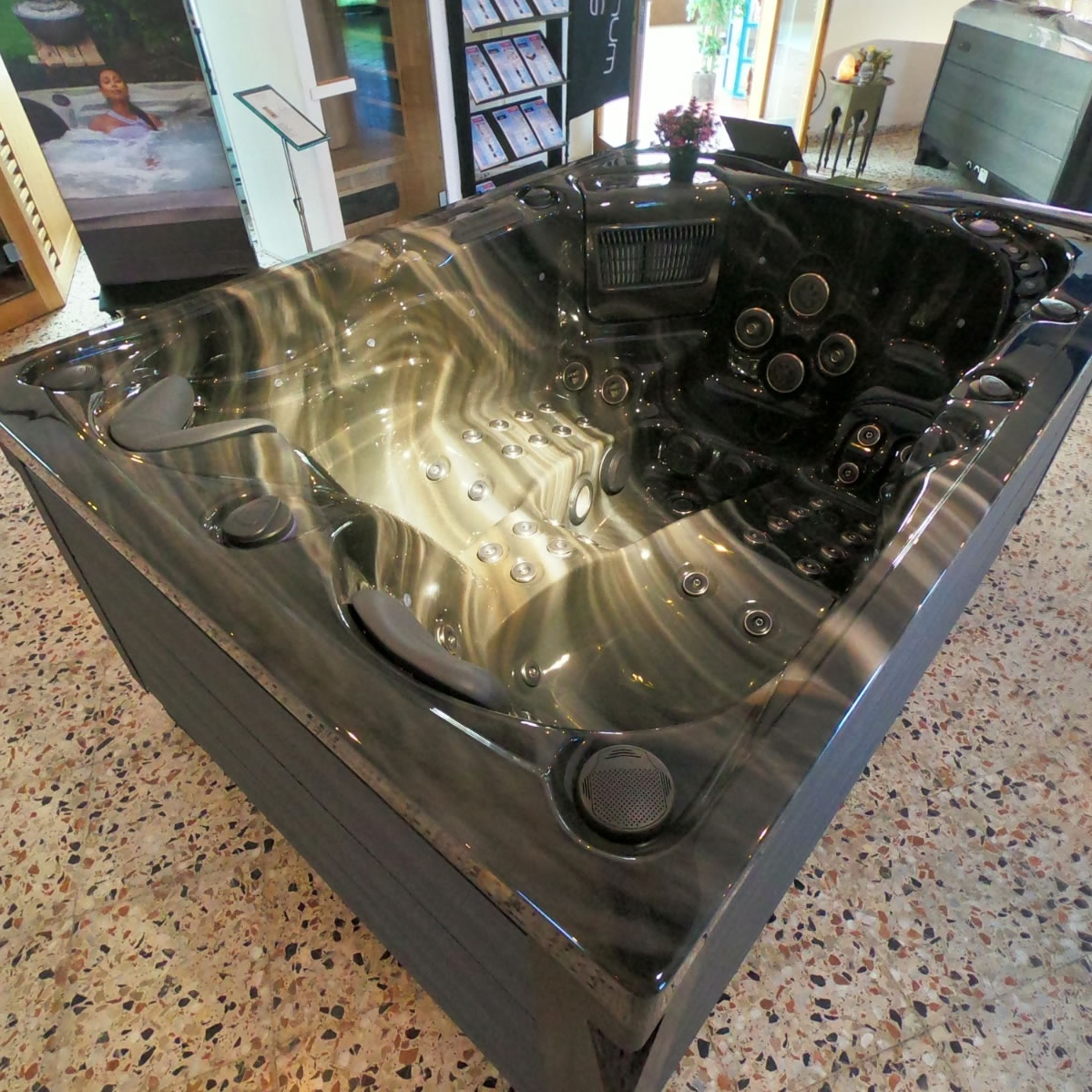 El Topaz tiene chorros giratorios para brindar un masaje más amplio en el grupo muscular objetivo, chorros direccionales para que pueda identificar ciertas áreas que necesitan un masaje más profundo y potente y chorros estáticos perfectamente posicionados que masajean ciertas áreas del cuerpo.