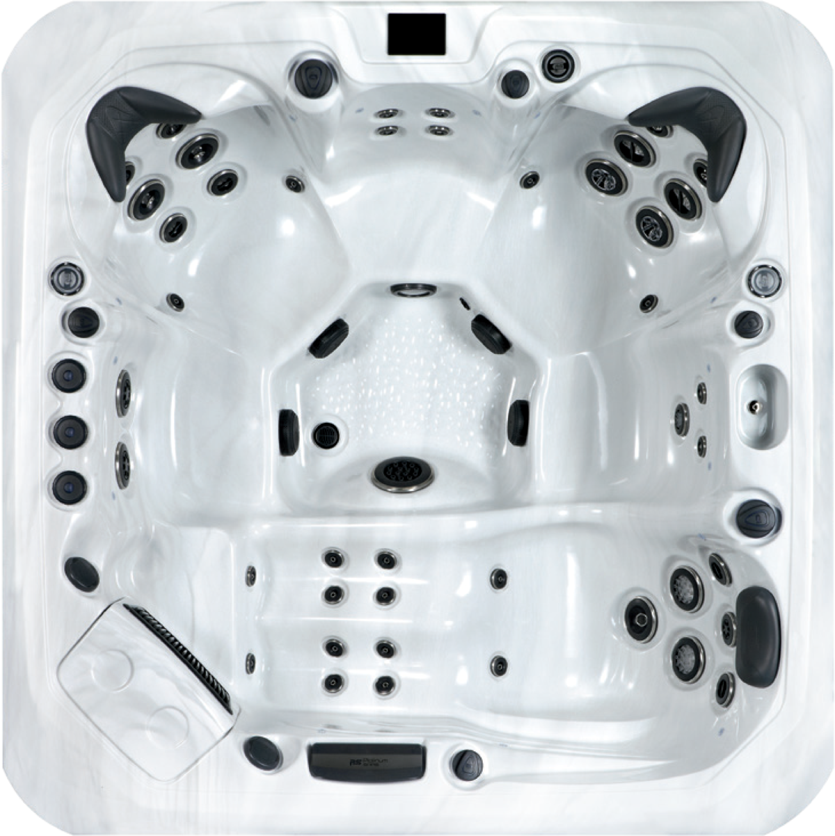 Le Platinum Santorini est conçu pour accueillir jusqu'à six personnes, avec une luxueuse chaise longue et cinq sièges. Comprend 52 jets, des jeux d'eau et des lumières LED. De plus, il utilise deux pompes de 2 CV, permettant une pression de jet puissante, rendant l'expérience d'hydrothérapie exceptionnelle.